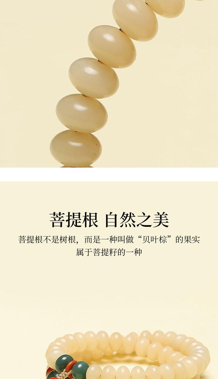 修行的法器:它不仅仅是一件饰品,更是一件辅助修行的工具。在盘玩中磨练心性,在佩戴时提醒自己精进向善。 强大的护身符:凭借菩提的强大磁场和多圈的层层守护,寓意它能有效抵御负能量,保佑佩戴者安康顺遂。 时尚与禅意的结合:多圈设计显得非常时尚、文艺,既能搭配日常服饰,又能彰显佩戴者独特的文化品味和沉静气质。