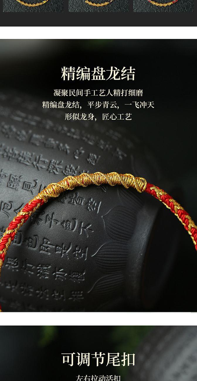 蓄势待发: 盘绕的形态象征着力量在聚集和积蓄,如同潜龙在渊,等待时机一鸣惊人,一飞冲天。寓意着厚积薄发,等待时机展现能力。 守护与环绕: 龙身盘绕在手绳上,有“环绕守护”之意,仿佛一条神龙时刻守护在佩戴者身边,形成一道强大的保护屏障,辟邪保平安。 圆满与恒久: 盘绕的造型也象征着万事圆满,能量循环不息,寓意好运和成功长久相伴。