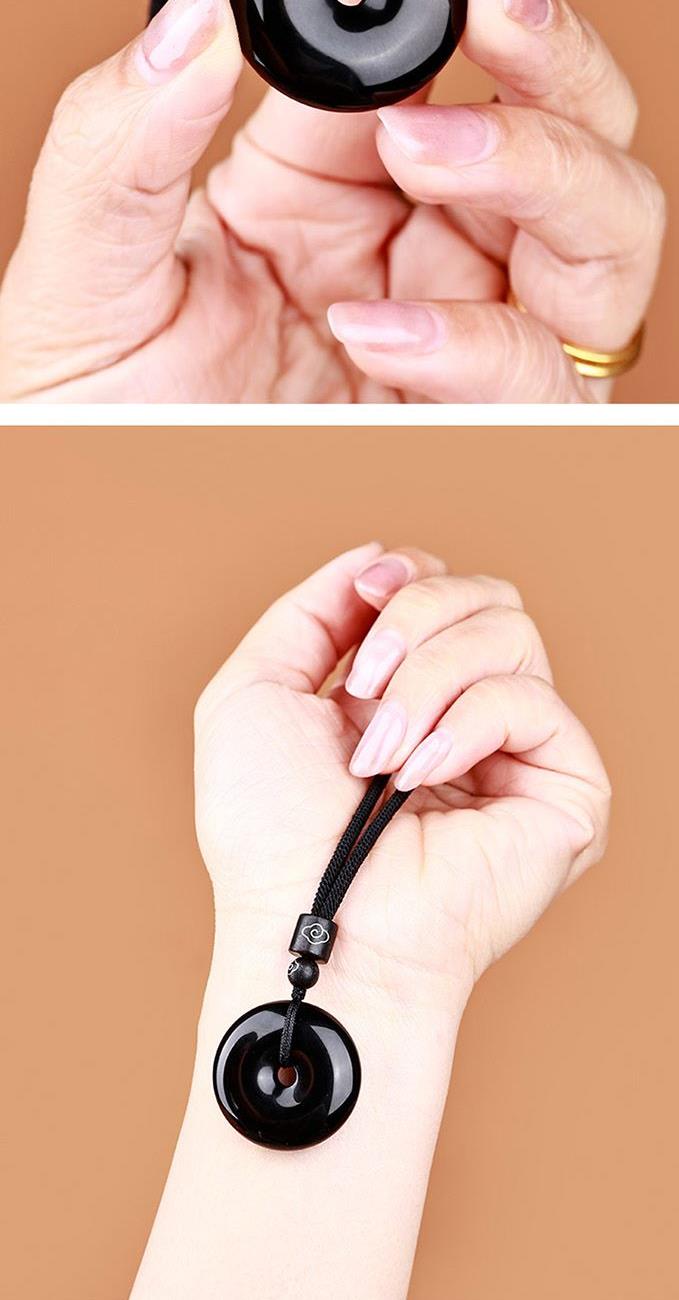 防护,百无禁忌: 黑曜石从材质上提供强大的辟邪和能量防护盾,而平安扣从形态上承担 “锁住平安,隔绝厄运” 的使命。两者结合,寓意着为佩戴者构建一个极其坚固的能量屏障,尤其适合感觉自身能量场较弱、需要强力保护的人。 先破后立,净中得静: 黑曜石先 “破”——破除邪祟、吸收负能量;无事牌后 “立” ——立下平安、宁静的愿景。黑曜石净化你的能量场后,无事牌的“空”和“无”才能更好地带来内心的宁静与祥和。寓意着 “净化身心,方得自在”。