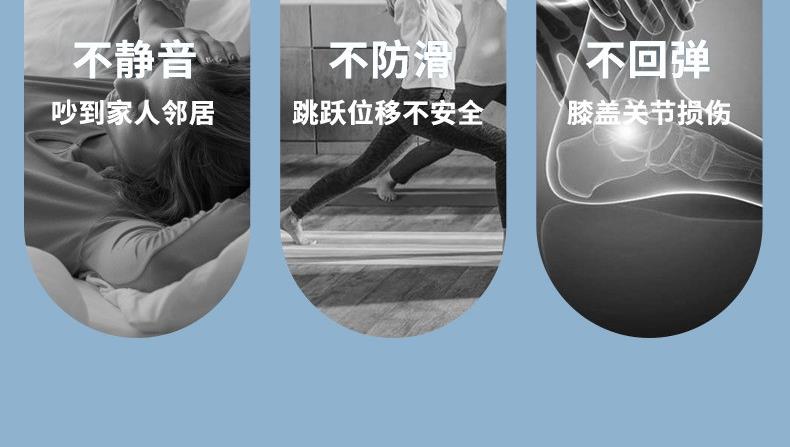 居家跳绳不扰民,正面人体防滑,背面吸附抓地,高弹减震,保护关节