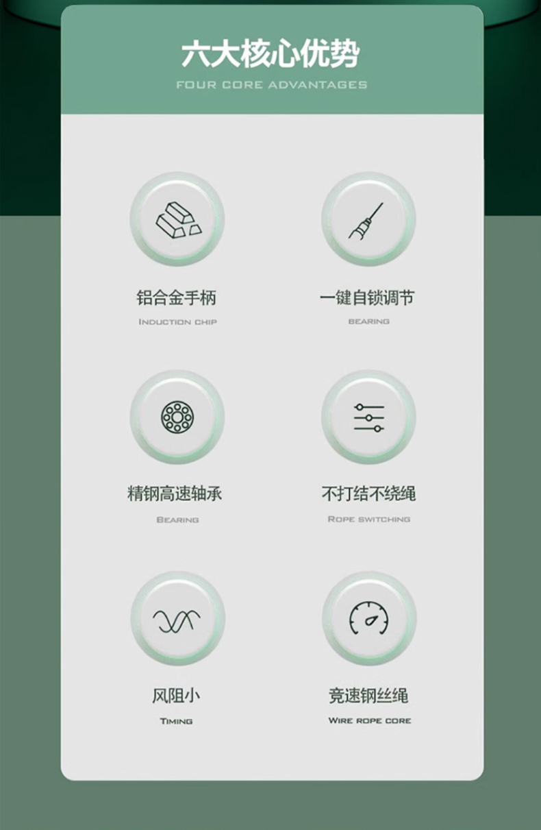 军工级强度, 49股高碳钢丝芯提供抗拉强度,耐暴力抽打、抗变形,寿命远超普通跳绳。