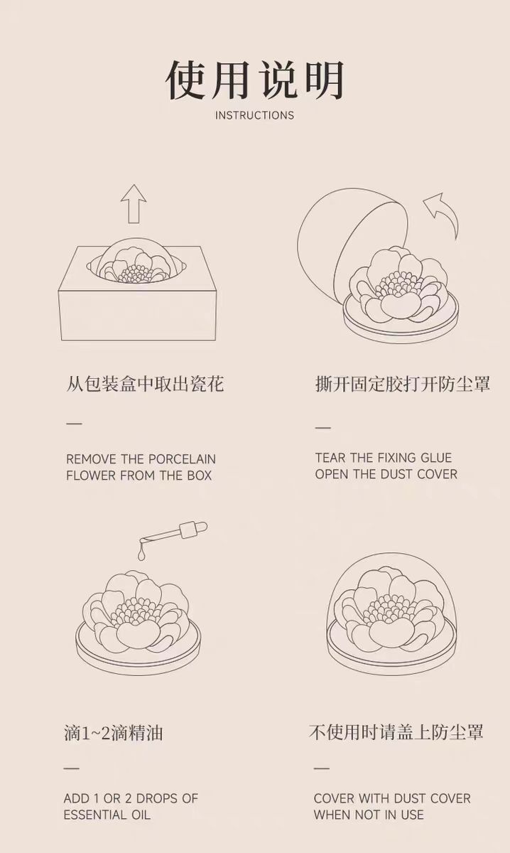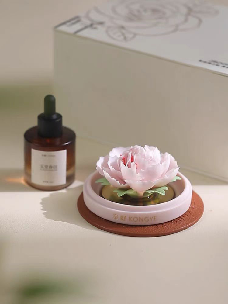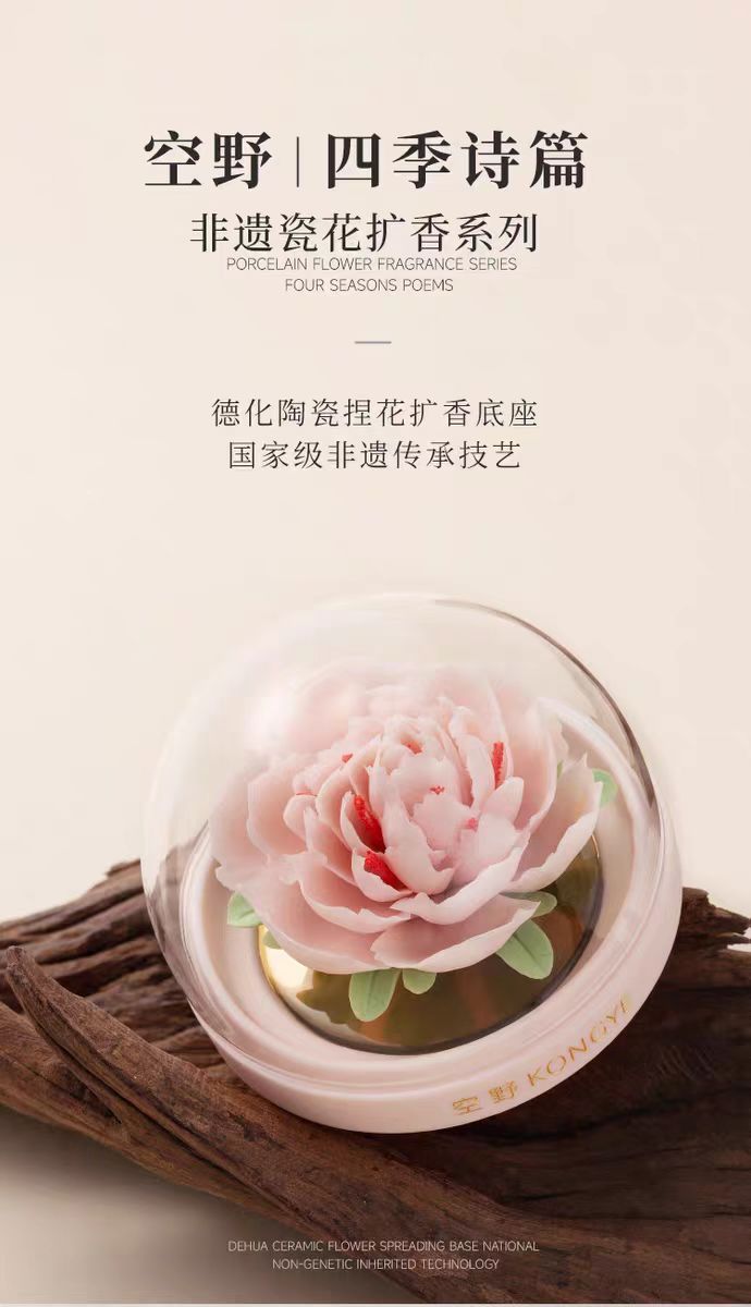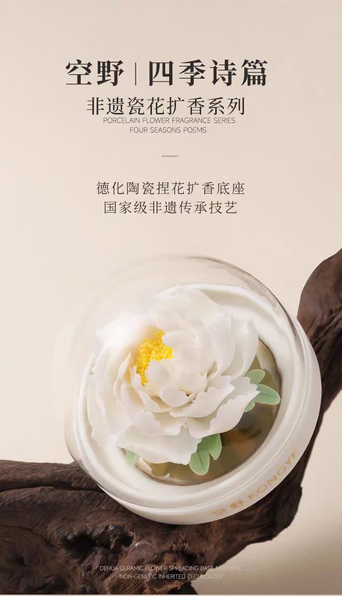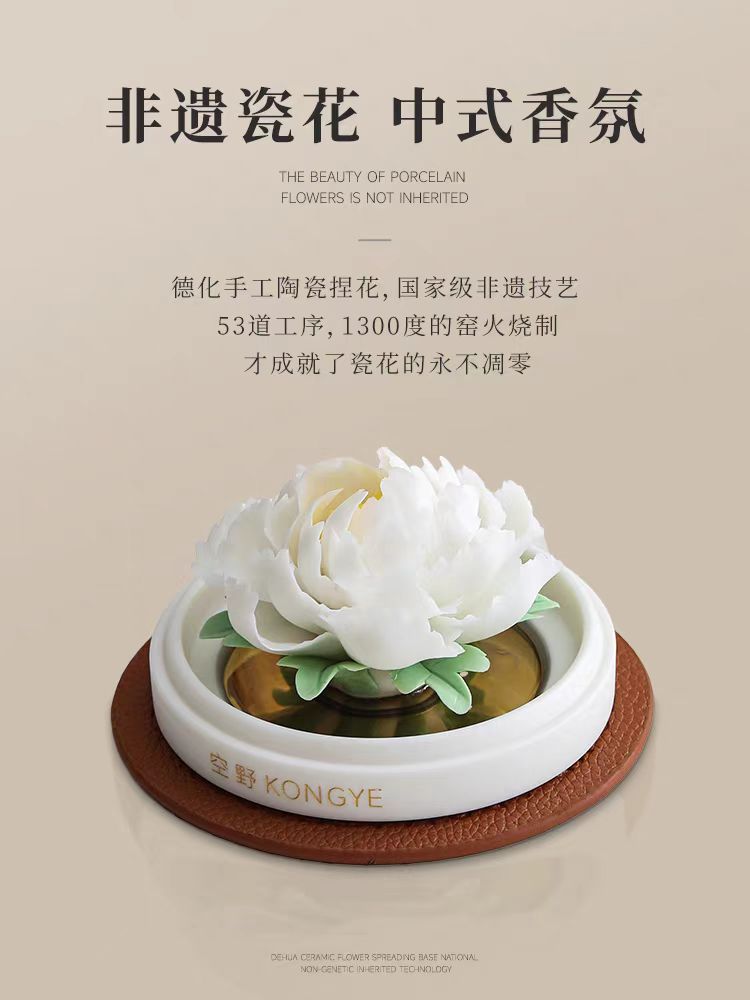 配置:非遗瓷花X1、皮垫X1、精油30ML、贺卡。 尺寸:瓷花底座直径100mm*高62mm, 皮垫直径118mm, 礼盒220X160X93mm。 款式可选:芙蓉花/茶花/绣球花/黄牡丹/粉牡丹/桂花